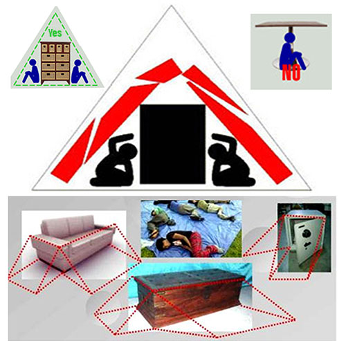 2) Cainii, pisicile si copii mici se ghemuiesc automat si in mod natural in pozitia fetala. Si tu ar trebui sa faci la fel in caz de cutremur. Este un instinct de supravietuire natural. Poti supravietui intr-un mic gol. Du-te langa un obiect, langa o canapea, langa un obiect mare si voluminos, care se va comprima intr-o oarecare masura, dar care va lasa un gol langa el.