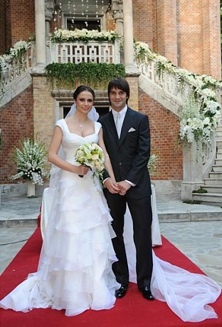 în timp ce Adelina a avut o rochie creată tot de Armani, în două nuanţe de alb,