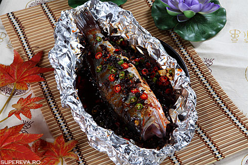 ea se aseaza pestele preferat asezonat cu sare si piper. Se serveste cu