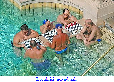 Hotelului Gellert si mozaicuri încrustate cu aur, localnicii joaca linistiti sah