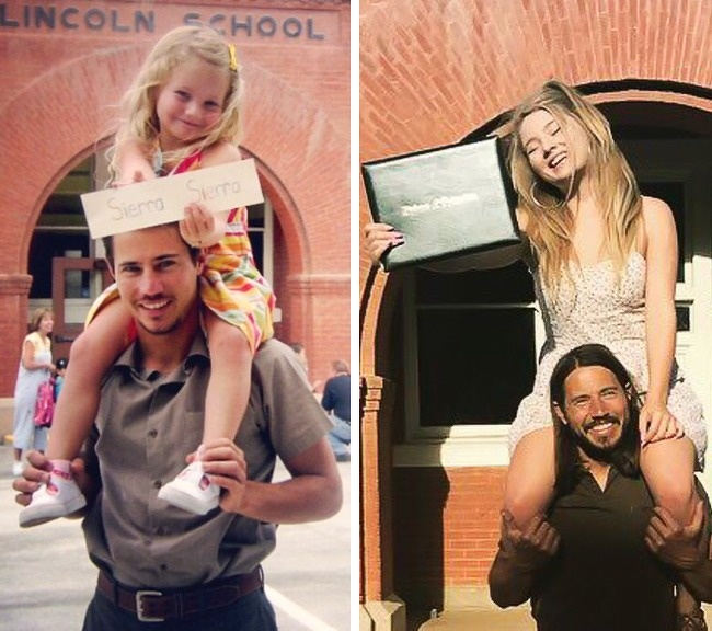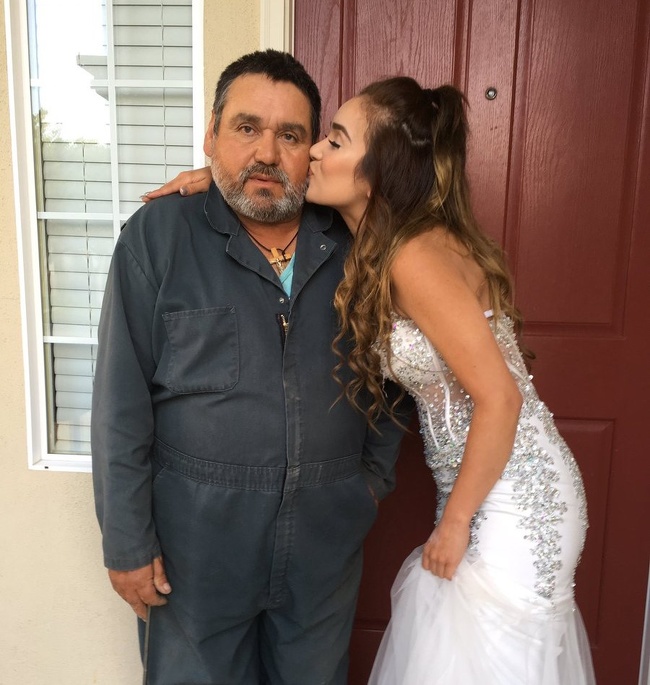2. “Tatal meu lucreaza atat de mult si nu a ajuns sa ma vada in ziua balului de absolvire, asa ca m-am pregatit din nou a doua zi – acum avem poze impreuna!”.