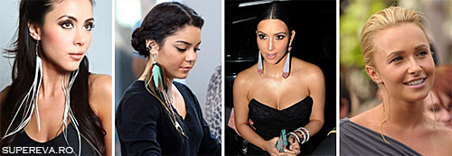 Extrem de eleganti sunt cerceii foarte lungi confectionati din pene agatate de
