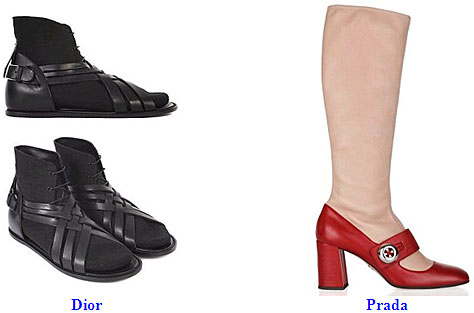 marca Prada, care dau piciorului un aspect protetic. Si daca extravaganta e in