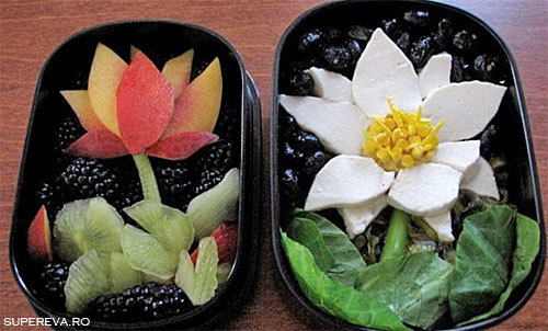 tofu, masline, porumb si salata) in forma de flori