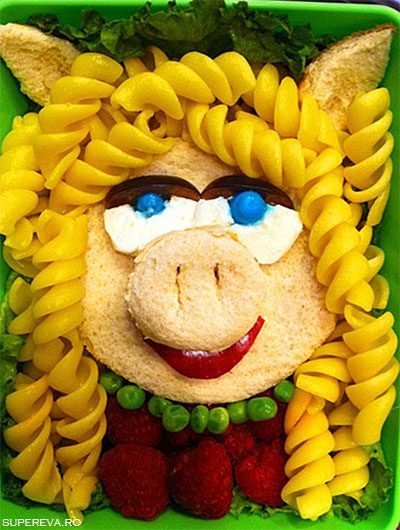 Miss Piggy creata din pasta, paine,