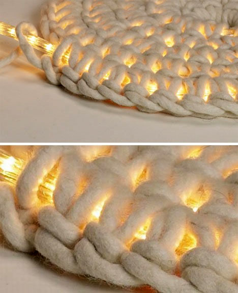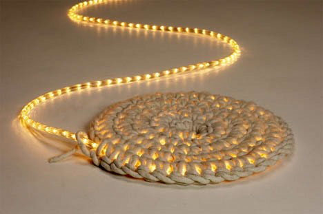 Pentru cei care adora sa isi faca singuri lucruri, acest covoras iluminat cu LED-uri este un proiect simplu, dar nou, de bricolaj. Un singur fir de LED-uri este incastrat intr-un tub tricotat, pentru a forma un covor.