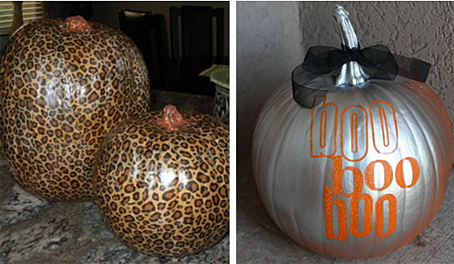 Pentru fetite va fi insa mult mai atractiv sa inlocuiasca ata alba cu sclipici si cu funde si paianjenii de jucarie cu bijuterii in forma de paianjen. Si ca sa nu investiti foarte mult in dovleci glamour, puteti folosi insecte de la martisoare mai vechi, margele si fasii de staniol. Un efect deosebit il au dovlecii imbracati in intregime in staniol sau pudrati cu sclipici de diverse culori.