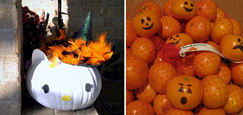 Daca vreti o solutie si mai practica pentru decoratiunile de Halloween, care, in plus, sa fie si comestibila, atunci puneti-va imaginatia la contributie. Ce seamana mai bine cu un dovleac? De acord, nu sunt dovleci, sunt portocale, dar& in vremuri de criza de dovleci reprezinta o solutie de compromis, care poate fi haioasa. Aveti nevoie doar de portocale cat mai multe si de un marker negru.