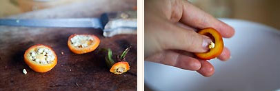 1. Pregateste macesele: taie-le in jumatate, elimina capetele verzi, semintele si perisorii. Dupa ce le-ai curatat se taie in bucati mai mici.