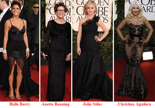 rochie neagra, fara a tine cont de tesatura, de croiala etc. La Golden Globes