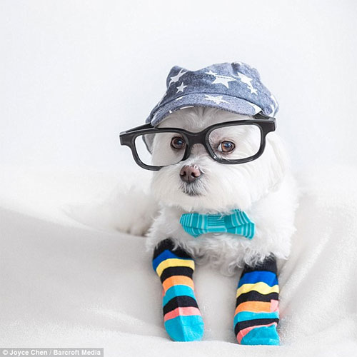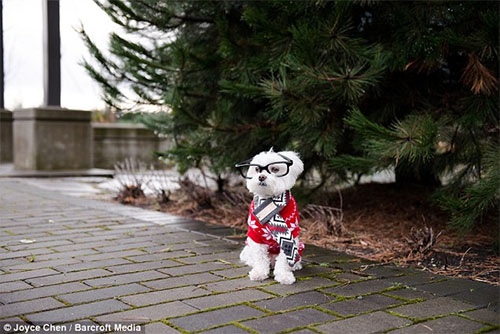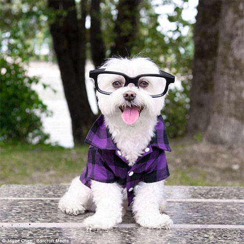 Cu o privire smechera, micutul Toby a castigat 100.000 de fani pe Instagram, deoarece proprietarul sau, Joyce Chen, din Vancouver, i-a facut un cont in urma cu trei ani. Joyce il fotografiaza pe Toby, in varsta de 10 ani, purtand un sortiment de tinute chic.