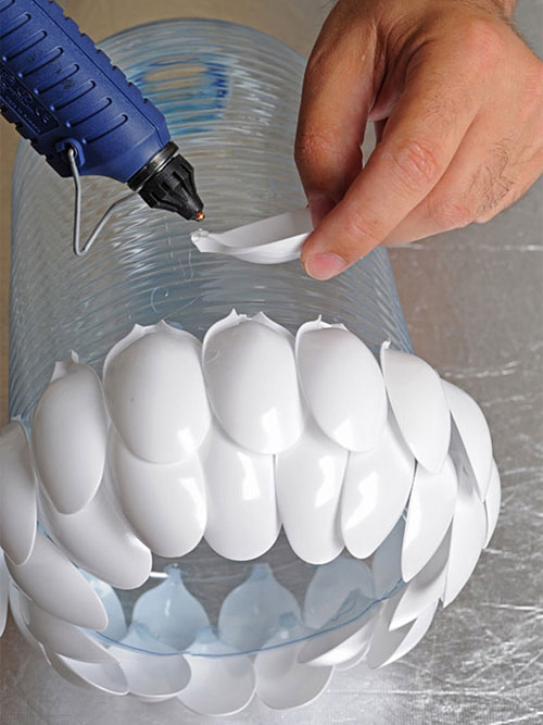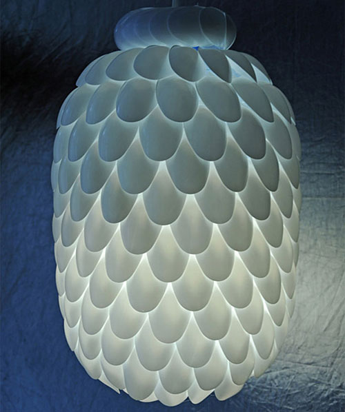 Lampa din lingurite de plastic