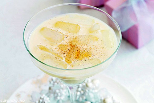 laptele si alcoolul. Se toarna in pahare de cocktail cu gheata si se servesc