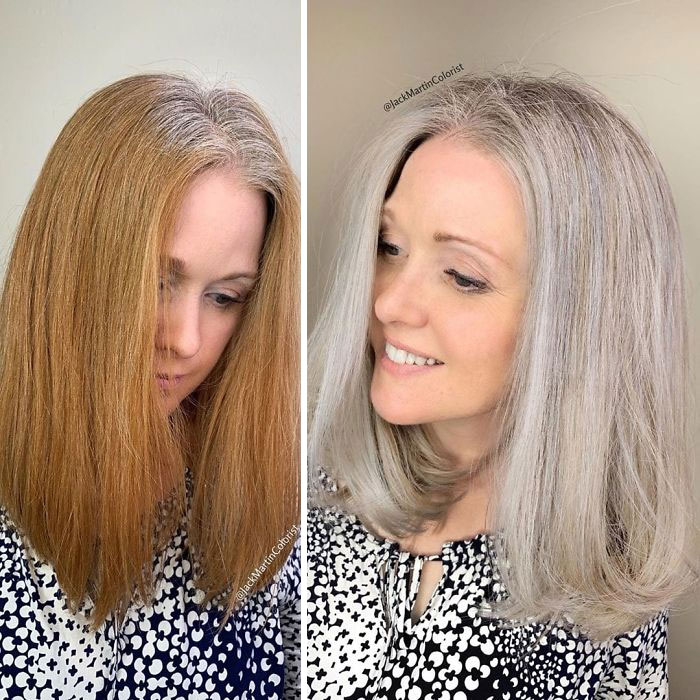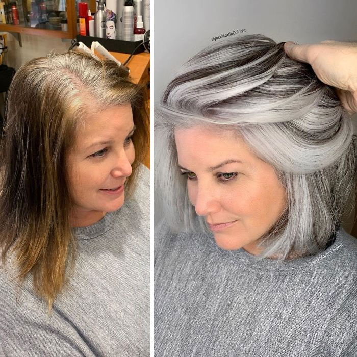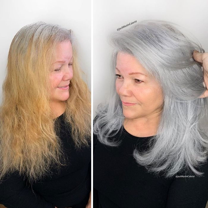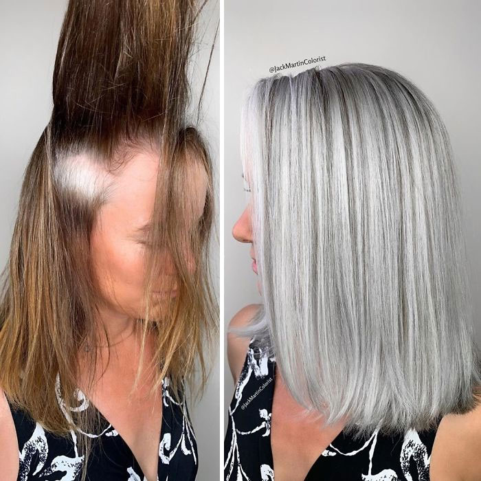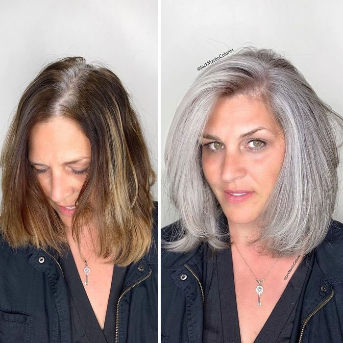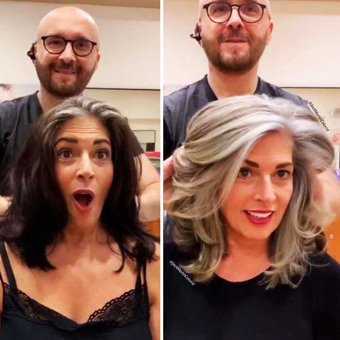 Jack Martin a acceptat provocarea. În cele din urmă, cei doi au decis să-i vopsească părul argintiu (asemenea rădăcinilor ei naturale) – un cenușiu natural puțin mai lucios – ceea ce ar permite femeii să viziteze mai rar saloanele. Rezultatul a fost extraordinar. Martin a fost atât de mulțumit de munca sa, încât a postat transformarea pe Instagram. Și oamenii au observat. Poza a devenit virală, aducându-i clienți lui Martin cu solicitări similare.