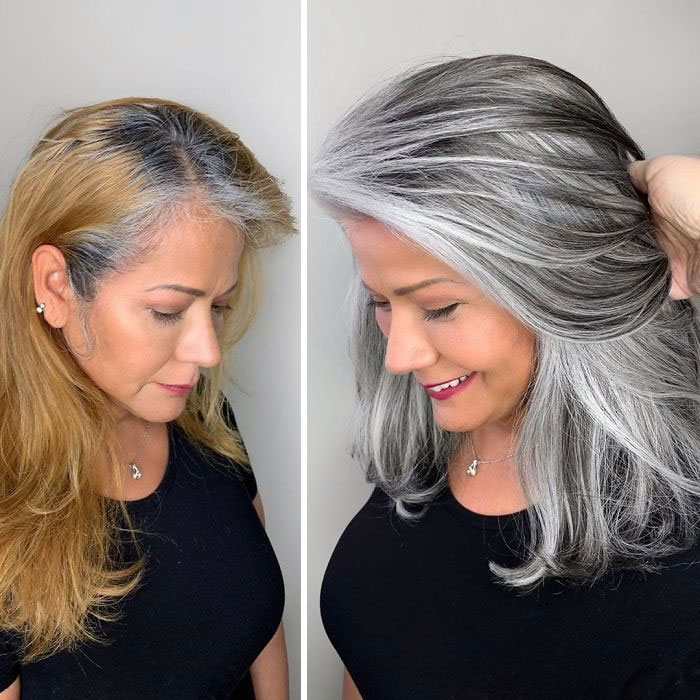 “Clientele mele cu părul gri natural vin de două sau trei ori pe an, in loc de o dată la 3 săptămâni”, a spus Martin pentru Allure. Libertatea care vine cu un aspect atât de uimitor dar naturalm este într-adevăr atrăgătoare, fără să mai vorbim de emoțiile împuternicitoare care vin odată cu deținerea părului gri natural. Martin de obicei face aceste transformări pe parcursul unei sesiuni de zece ore.