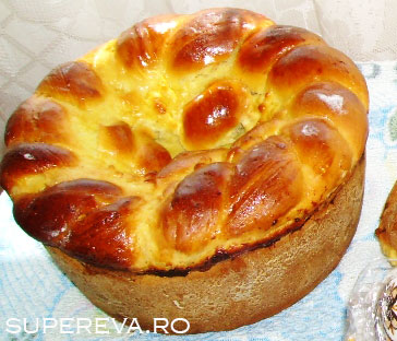Dupa ce a crescut, din aluat se întinde pe planşeta cu putina faina o foaie groasă de 1 cm şi de mărimea fundului formei în care se va coace. (Din aluat se opreşte o bucată pentru un şnur in forma de cruce). Se ia o formă rotundă din cele mai mari, se unge cu unt, se presară cu pesmet alb fin şi se aşează foaia de aluat pe fundul formei. Apoi se mai ia o bucată de aluat, se pune pe planşetă şi se întinde în formă cilindrică de grosimea unui creion. Aceasta se pune în două, se răsuceşte ca un şnur, se aşează pe foaia de aluat de jur-împrejurul ei ca un fel de bordură lipită de pereţii formei şi se lasă să crească acoperită cu un şervet, la un loc călduţ.