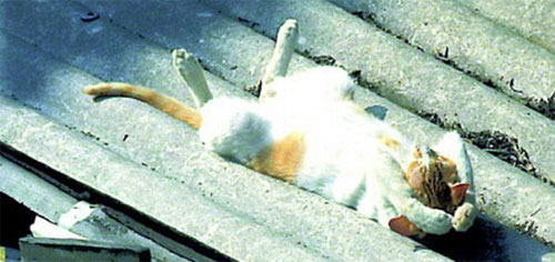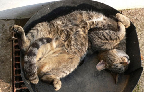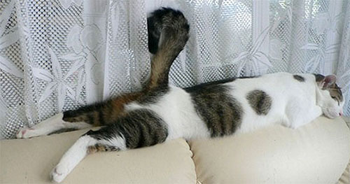 Pisica crobat – in timp ce este deja un talent innascut pe barna, pisica alb-negru isi arata flexibilitatea chiar si atunci cand doarme