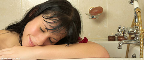 aceasta compozitie in cada umpluta pe jumatate cu apa. Stati apoi in cada timp