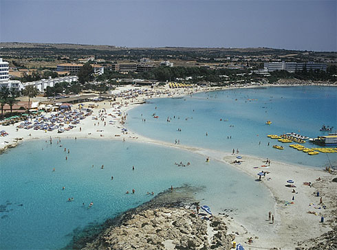 Plaja Nissi, aflata in zona Ayia Napa este o plaja atractiva cu nisip alb si