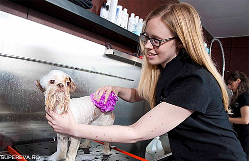 Acest Spa pentru animalele de companie arata ca un salon exclusiv, cu mese de