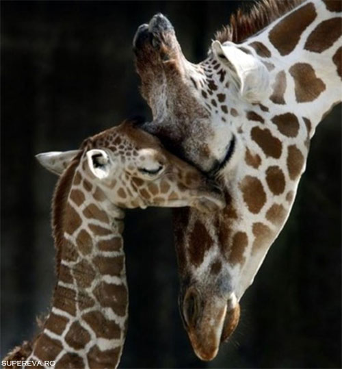 Aceasta girafa tanara va fi la fel de inalta ca si mama ei intr-o buna zi,