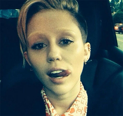 Oh, da, și cine o poate uita Miley Cyrus cu sprancenele decolorate?