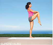 sprijinindu-te pe piciorul drept si ridicand bratele. Adu piciorul stang